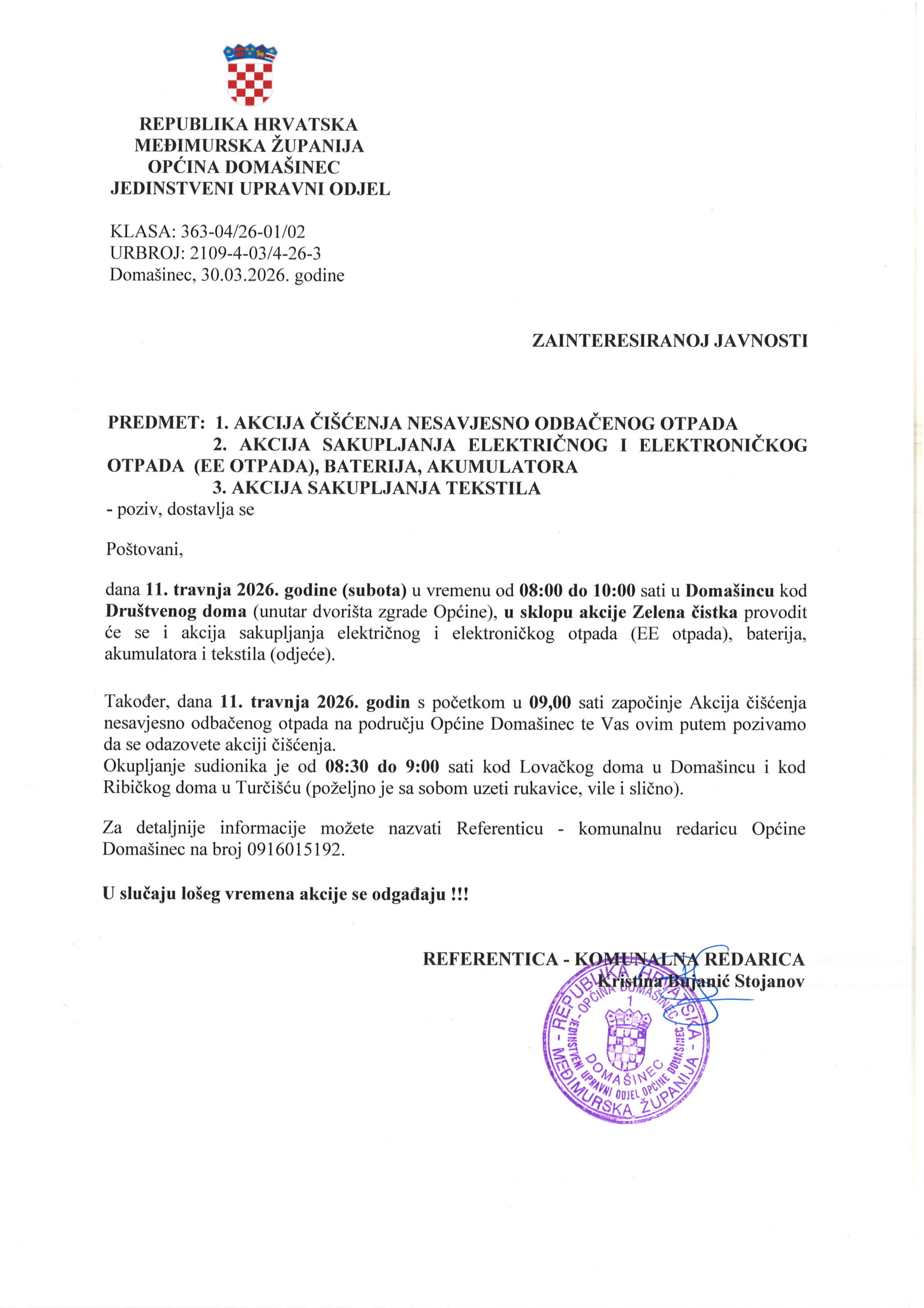 Odgoda akcije sakupljanja EE otpada i Zelene čistke